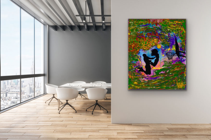 His innovative use of acrylics painted on the reverse side of Plexiglas, Canvas, Metal and Wood produce images that explode off the surface. Each piece treats the mind to a happy but still intense experience of color and design.